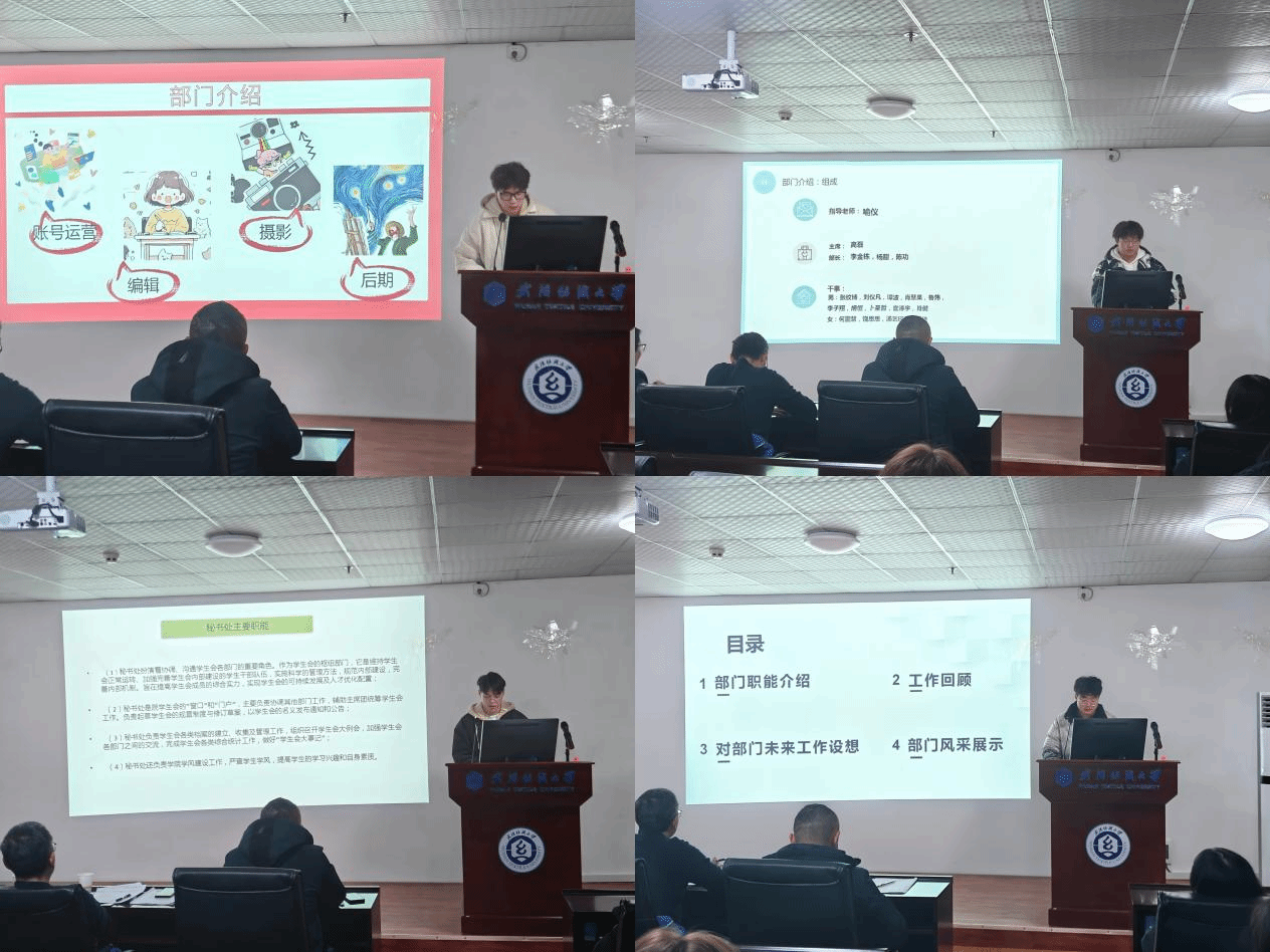 随后,团委学生会各部门主席依次述职,总结2023年的团委学生会工作,针对工作中出现的不足并加以改进,以及展望未来发展,提出新一年部门工作的具体要求与目标。