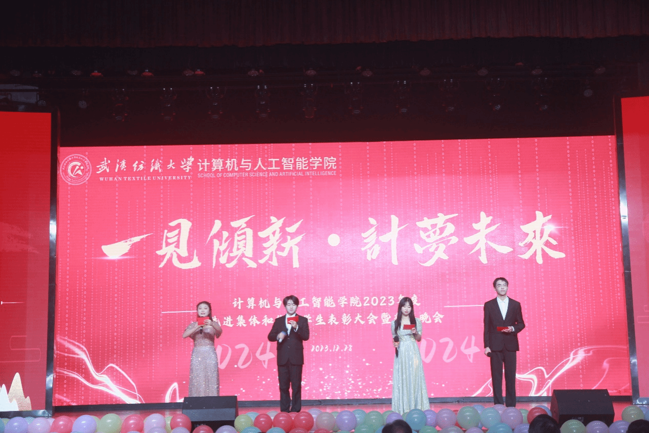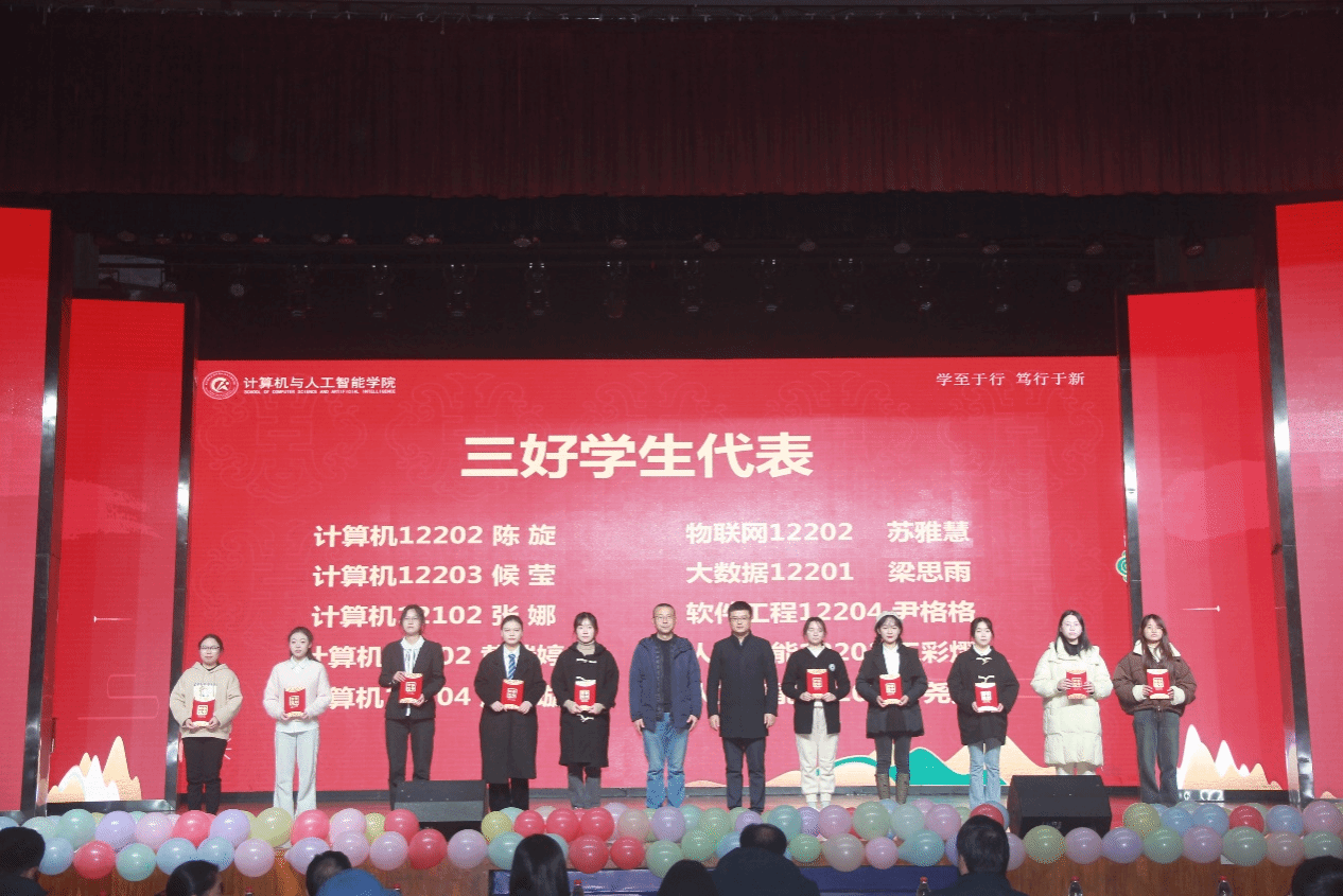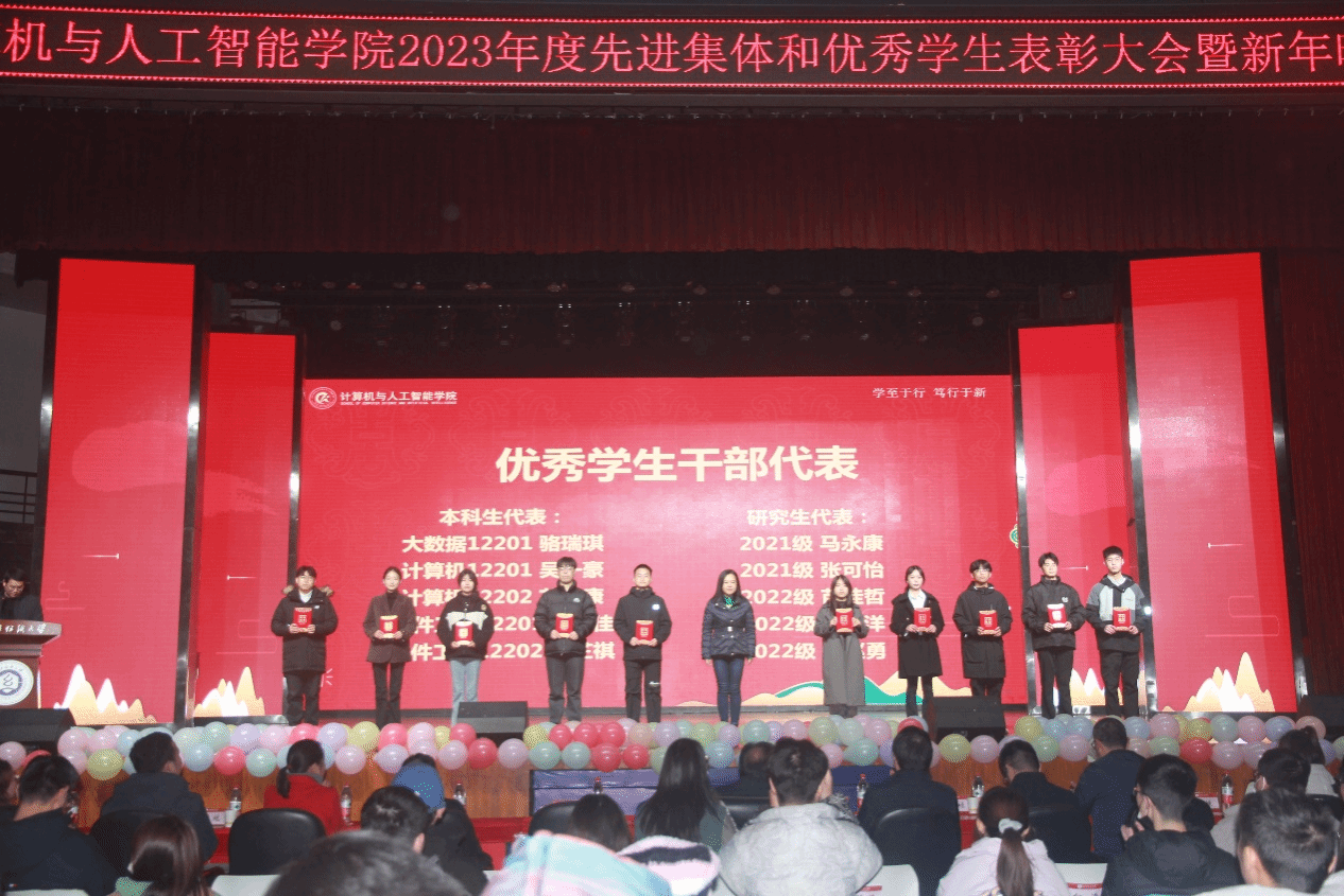 12月28日晚,计算机与人工智能学院在大学生活动中心演播厅举办了以“一见倾‘新’,‘计’梦未来”为主题的先进集体和优秀学生表彰大会暨迎新晚会。校党委常委、副校长冯军,学工部、校团委、教务处、招就处负责人,友好企业代表(恒生、光庭、噢易云、中软、讯方等),全体院领导、教职工,本科生、研究生等1000余人参与了本次活动。