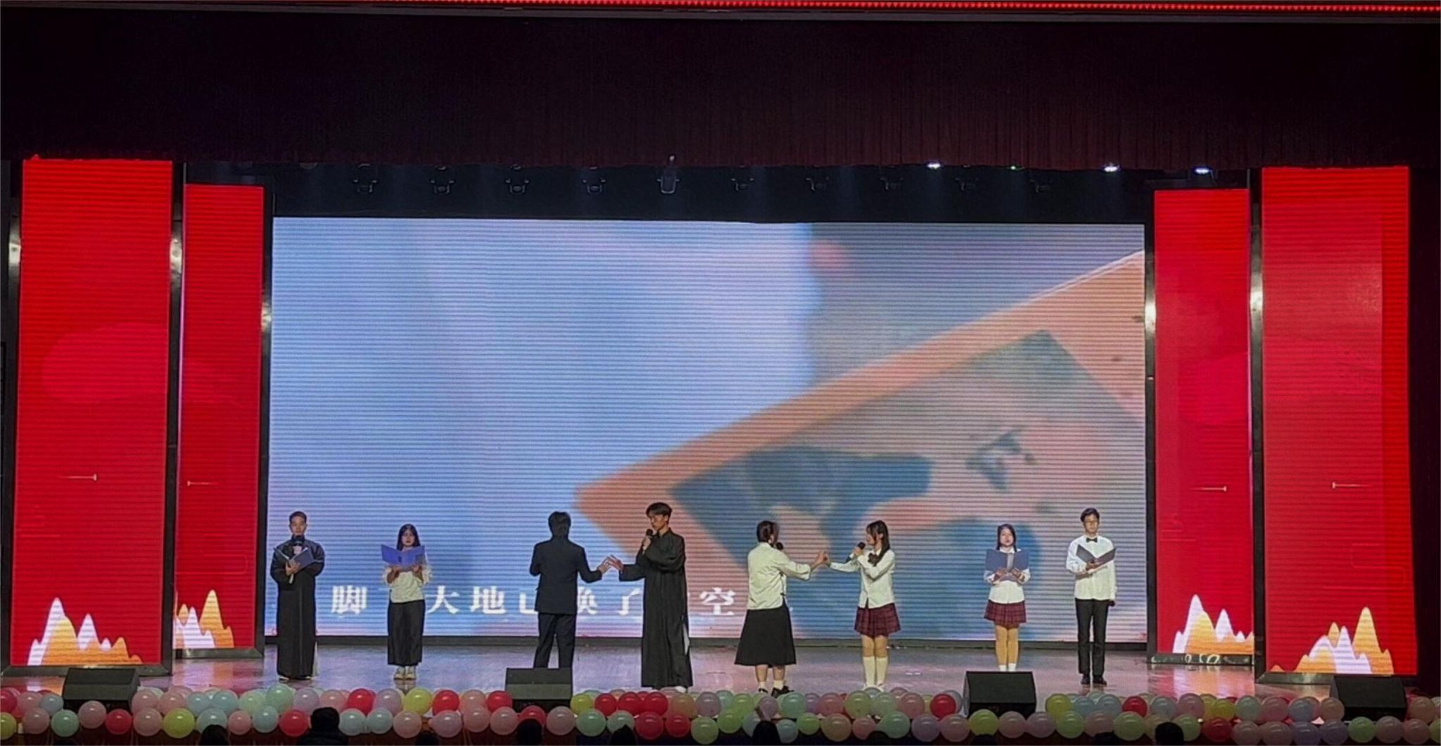 颁奖典礼在全体同学的庄严宣誓中完满闭幕,随后举行了“一见倾‘新’·计梦未来”的迎新汇演。本次汇演共有四个篇章:一、1024之源——正青春;二、1024之约——共此时;三、1024之志——起新程;四、1024之梦——创未来。总计十四个节目,包括合唱、独唱、诗朗诵、舞蹈、情景剧、小品、器乐演奏等,每一个节目都充满着青春的气息,展现着自我的创新活力与昂扬风采。台下观众持续的掌声、自发的欢呼,展现了计智学子对文艺汇演的高度赞赏与喜爱。