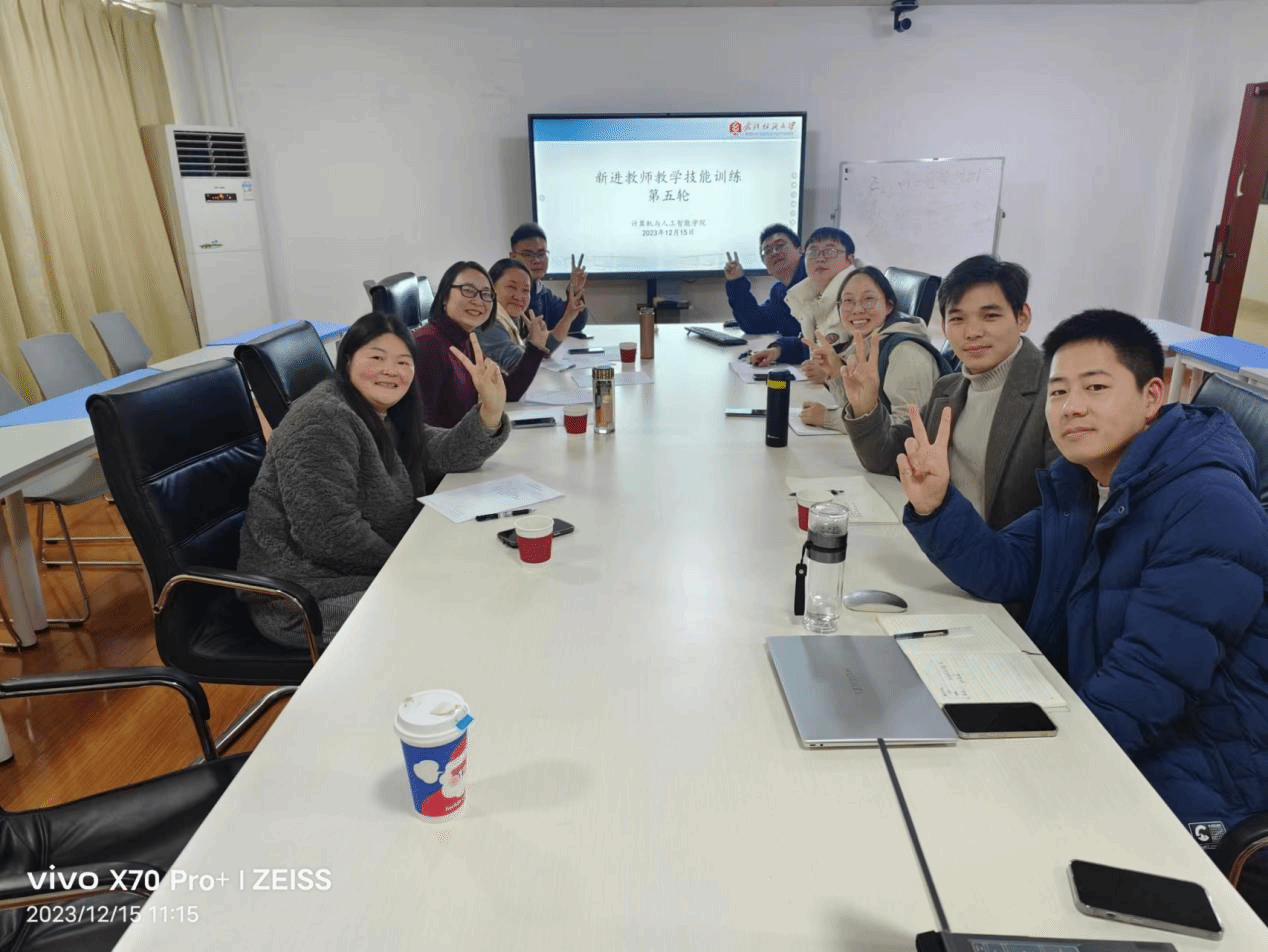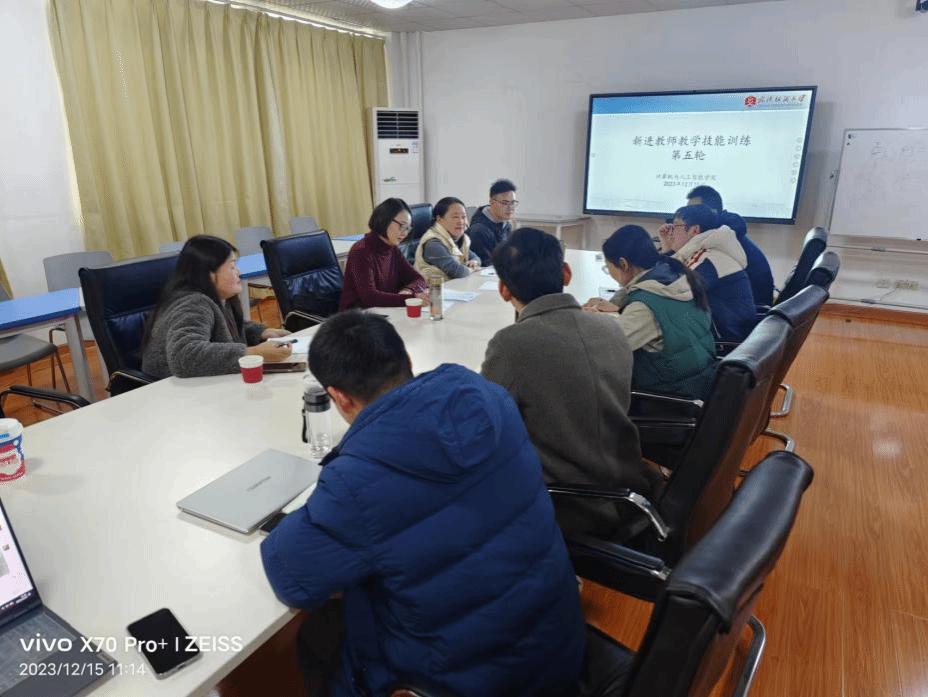 12月15日上午,由教师发展中心、计算机与人工智能学院组织的2023年度新进教师教学技能训练在崇真楼(南楼)A4031圆满结束,培训由计算机与人工智能学院院长胡新荣主持,学院骨干教师陈佳、万红艳参与指导,本年度新引进的教师参加。