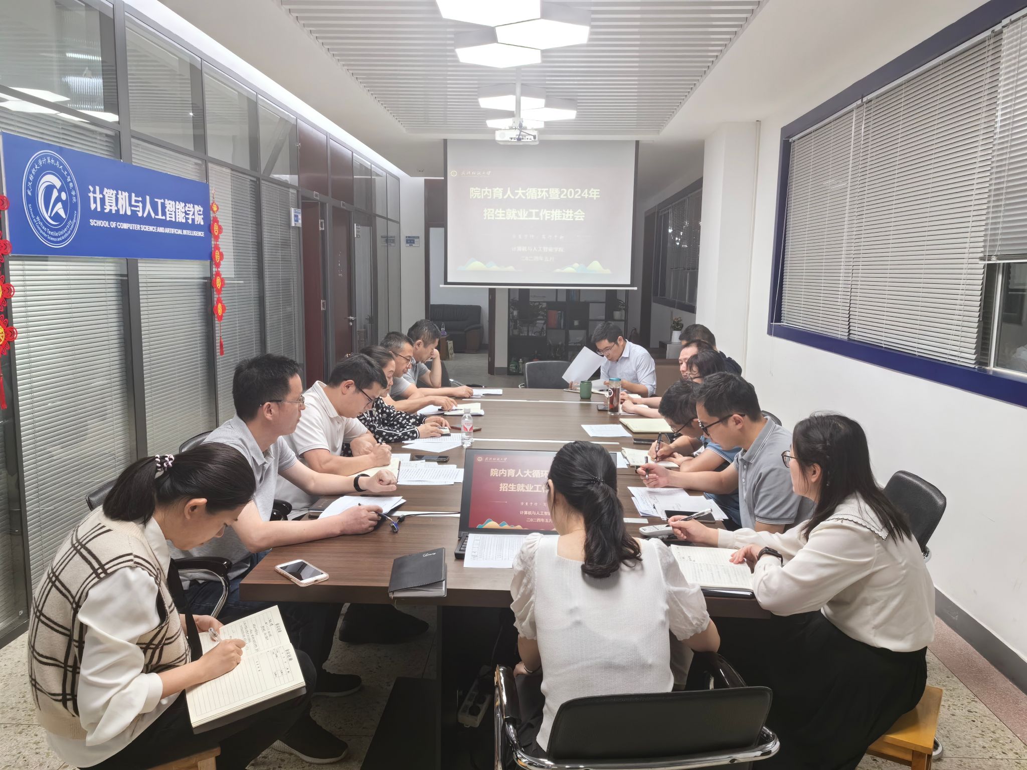 为深入分析2024年招生工作面临的新问题、新挑战,明确新形势下招生工作思路和方法;为帮助未就业学生顺利就业,计算机与人工智能学院于5月30日下午在学院4008会议室召开了院内育人大循环暨2024年招生就业工作推进会,学院全体班子成员、系主任、专业负责人、毕业生辅导员参加了此次会议。
