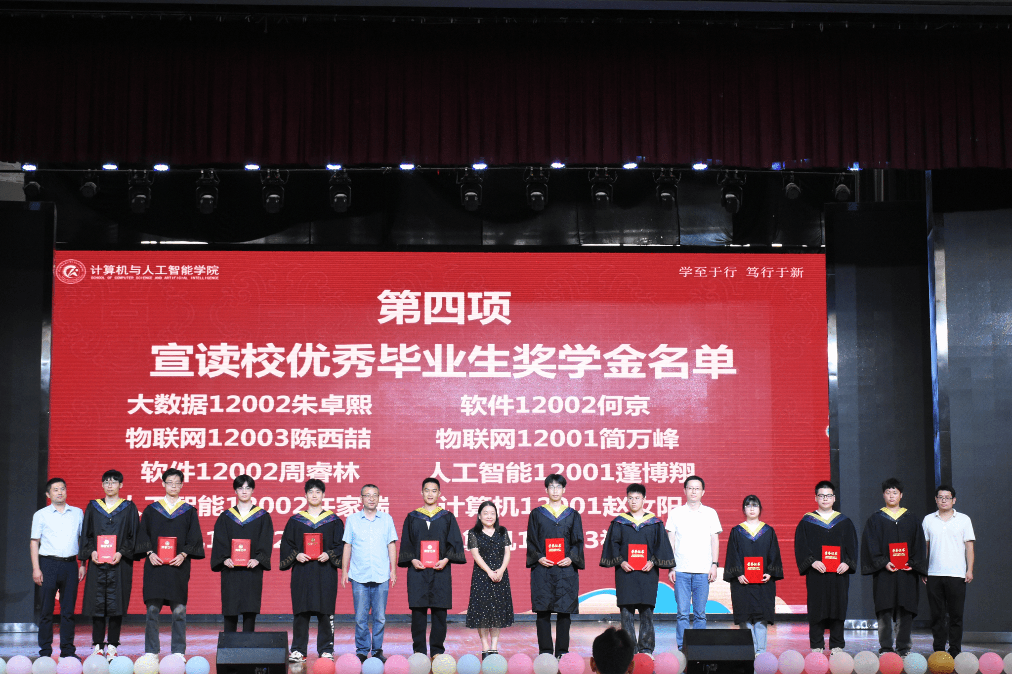 计算机与人工智能学院深入实施“三季育人”(迎新季、表彰季、毕业季)理念,以科技文化节为抓手,以毕业生欢送会为契机,不断完善学生科创激励体系,共选出并表彰科技文化节获奖代表10人;校优秀毕业生代表10人;校优秀毕业生奖学金代表10人。