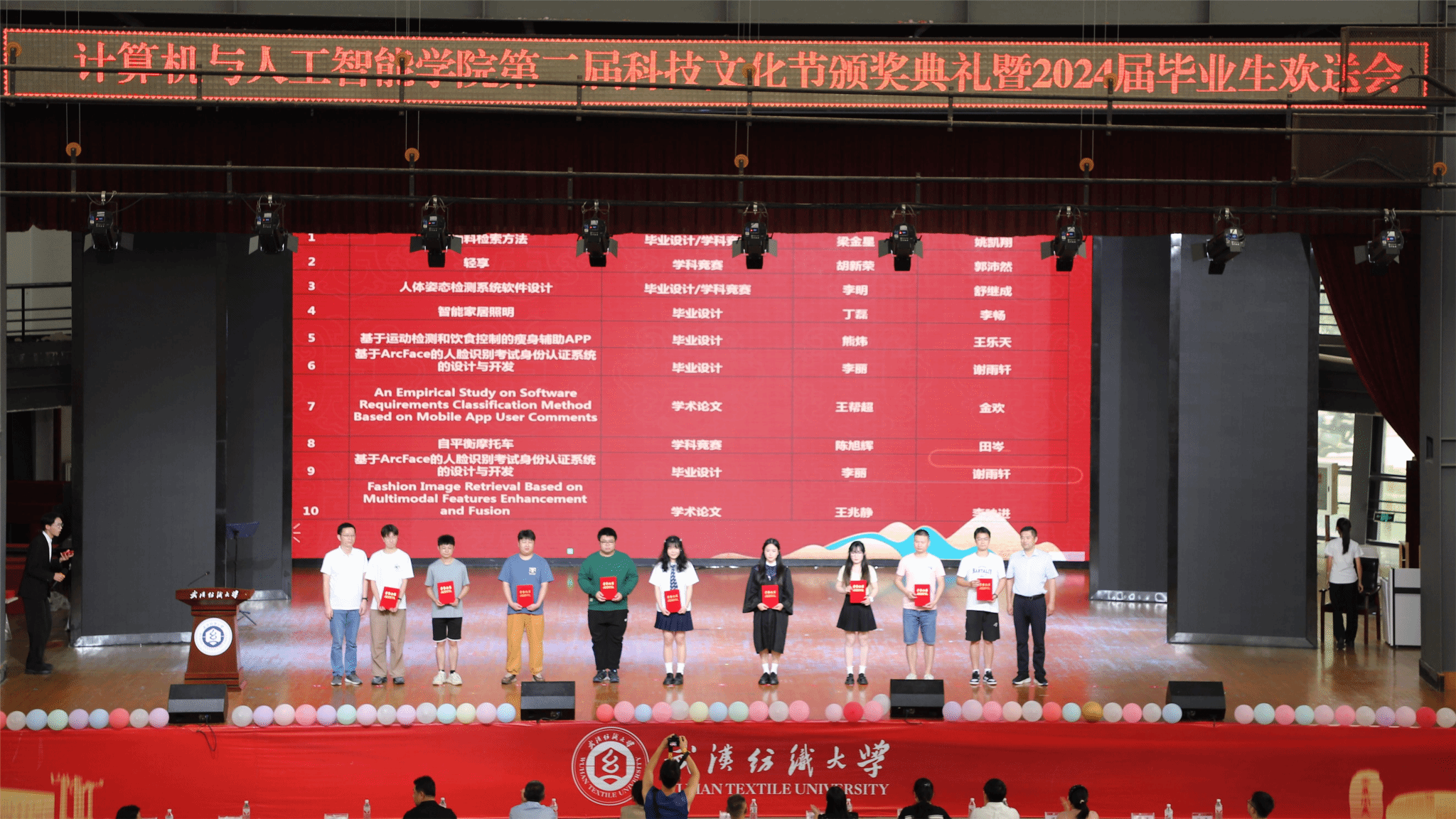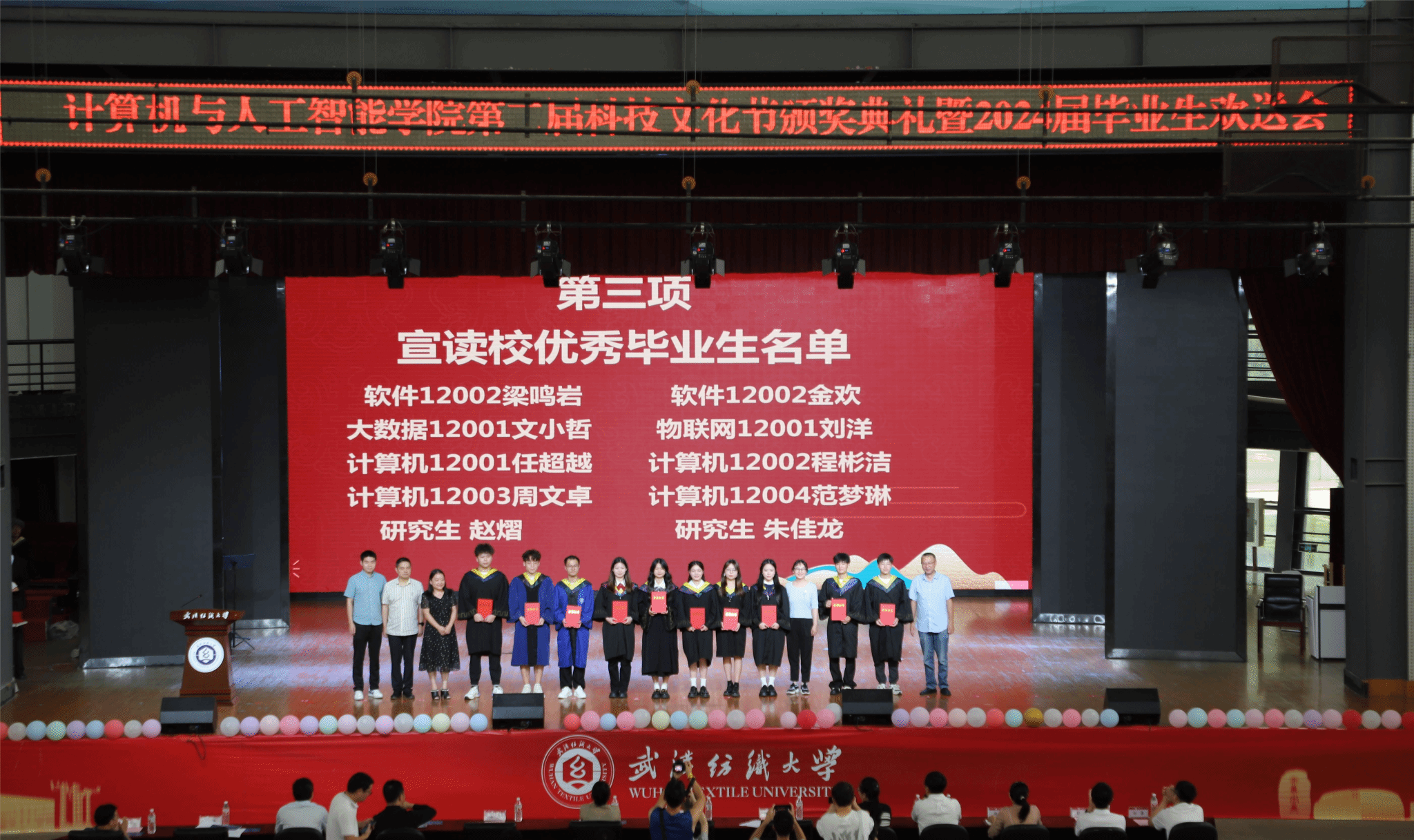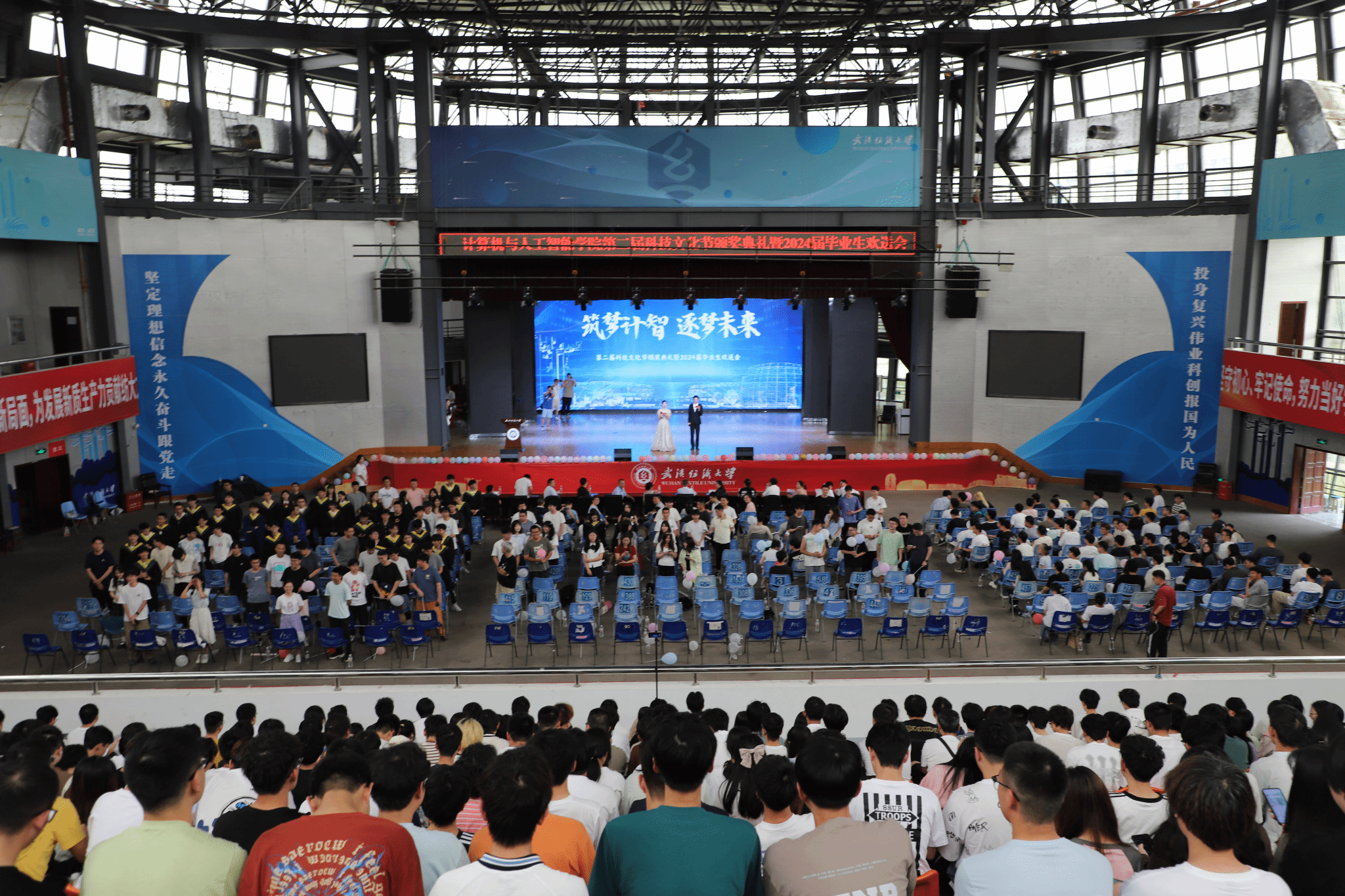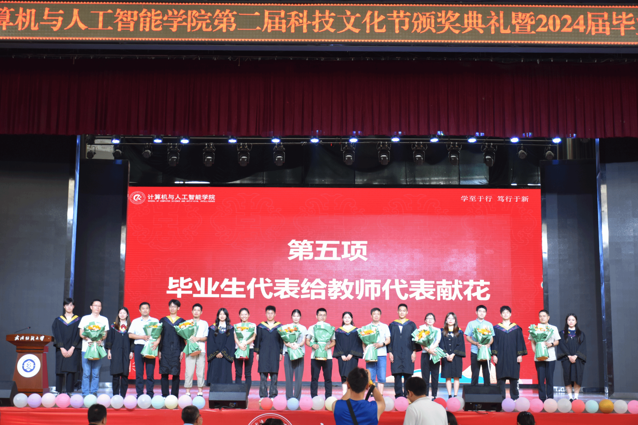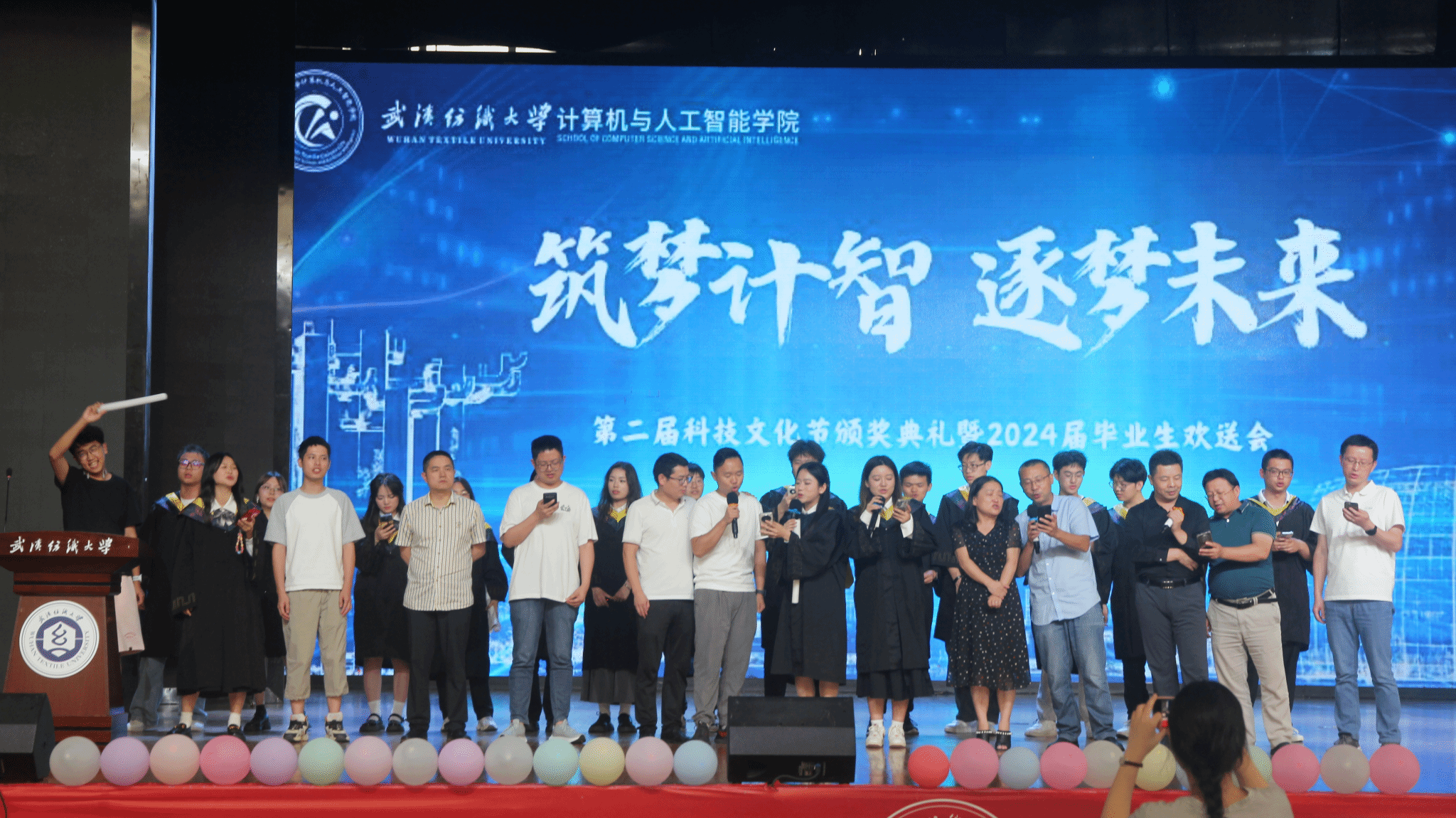 6月11日,计算机与人工智能学院在大学生活动中心演播厅举办了以“筑梦计智·逐梦未来”为主题的科技文化节颁奖典礼暨2024届毕业生欢送会。校党委副书记、副校长罗锦银,学校办、学工部、研工部、校团委、教务处等部门负责人,校友代表王波、戈明亮、林鑫等,全体院领导、教职工,本科生、研究生等1000余人参与了本次活动。