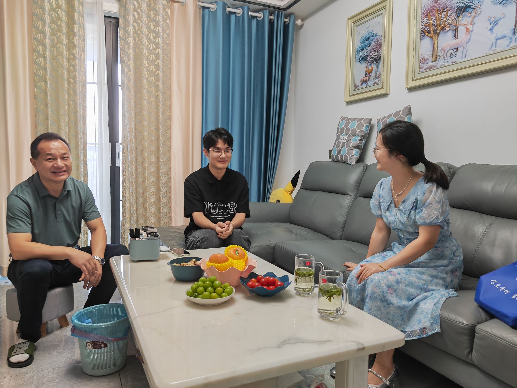 辅导员廖龙来到湖北黄石的廖同学家中,与家长进行了深入的交流。家长对廖同学在大学期间的表现感到骄傲,同时表达了对学院教育的感谢。同时提出希望,期待学院能进一步加强与企业合作,为学生提供更多实习和就业机会。廖龙回应说,学院一直致力于拓展校企合作渠道,为学生搭建更好的实践平台。同时还向家长介绍了学院的实习政策和发展前景,鼓励家长继续支持廖同学参与社会实践。