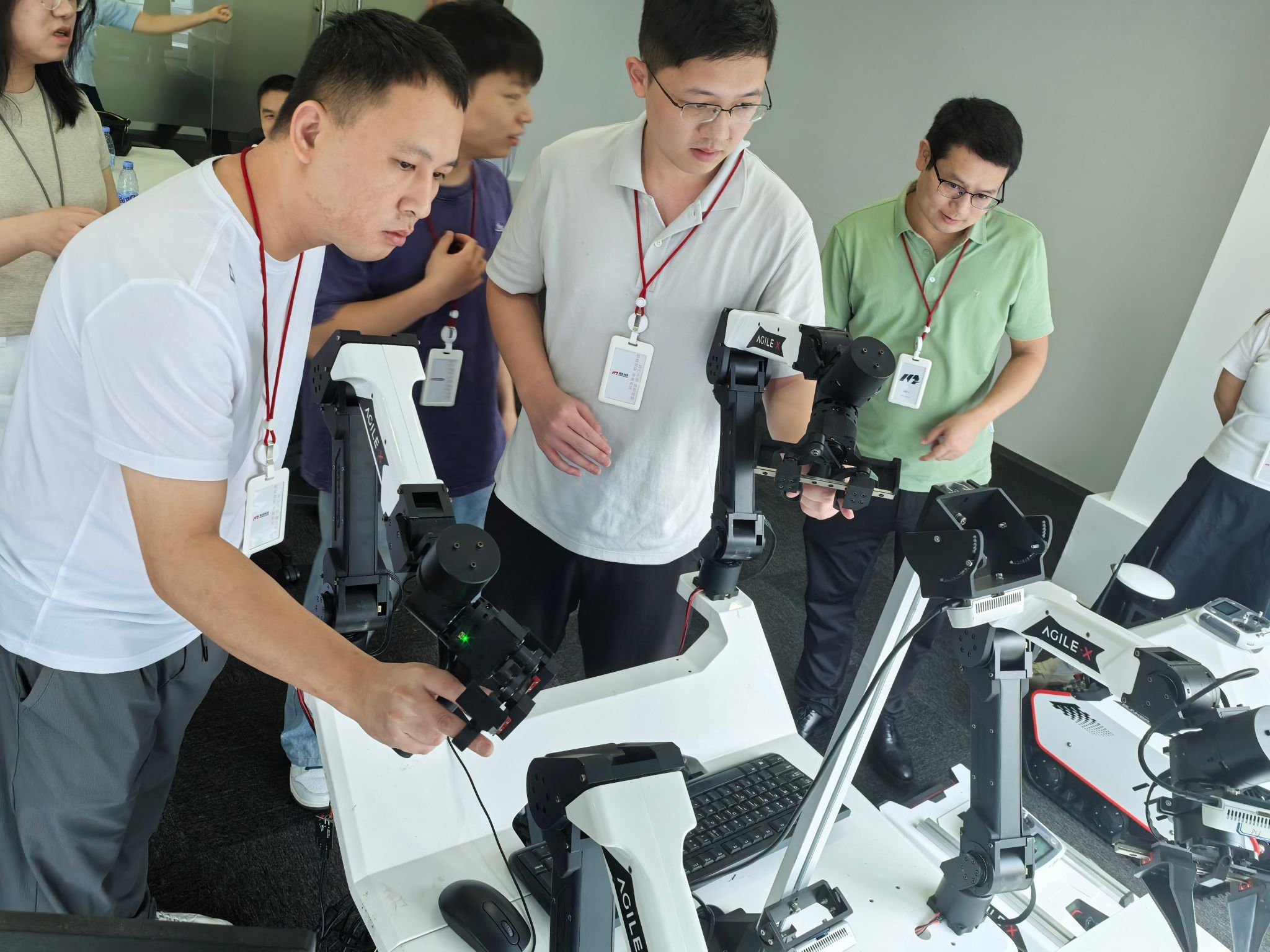 随后调研组一行前往深圳松灵机器人有限公司与公司负责人进行座谈,重点在技术创新成果、业务布局以及与高校教育合作成功案例的交流,希望通过协同育人,进一步实现资源共享、优势互补,共同推动人工智能领域的技术创新和人才培养。同时还针对学生实习、就业等方面进行探讨。会后在工作人员的指导下,调研组对公司主营产品进行了实操,对公司有一个更直观的了解。