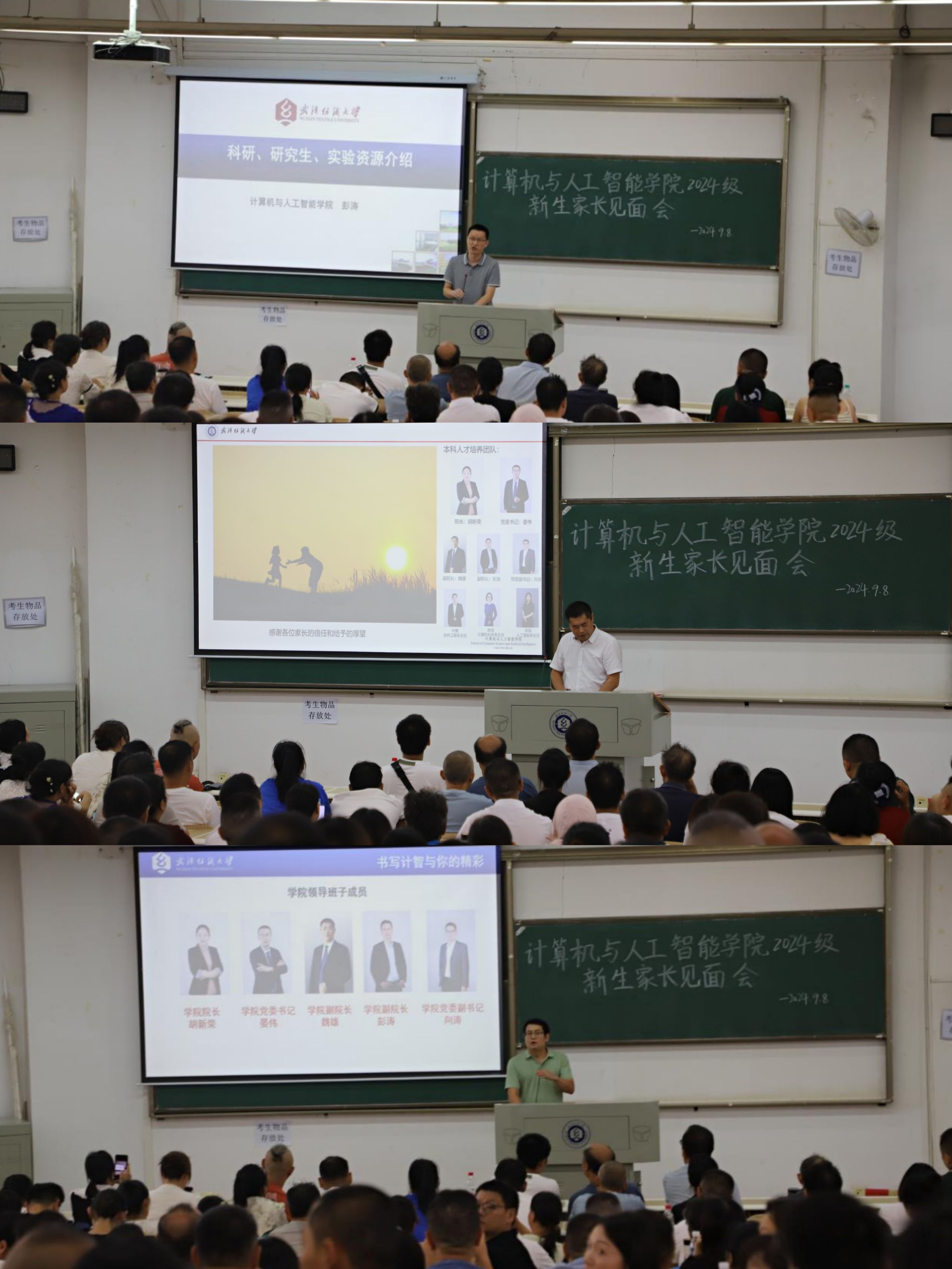 为深化学院与2024级新生家长之间的互动交流,推动家校协同发展,共同营造有利于新生在大学生活中健康成长的良好环境。计算机与人工智能学院于9月8日14:30,在崇志楼03-T202举行2024级本科新生家长见面会。学院院长胡新荣、党委书记晏伟、副院长魏雄、彭涛、党委副书记向涛,辅导员廖龙、易凡参与本次会议,会议由晏伟主持。