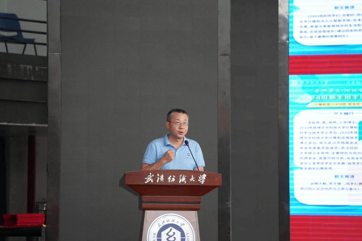 院长胡新荣以“‘计’承使命,‘智’创未来”为题,对学院的新生表示衷心的祝贺和热烈的欢迎,从学院各专业设置介绍了计算机与人工智能学院的独特之处。就如何克服初来大学时的彷徨和无措,度过丰富宝贵的大学生涯提出了四点建议:一是要争做新质人才,勇担使命。在进入广阔的计算机科学领域学习时,就要主动适应面向未来的学习,利用丰富的学习空间打下坚实的基础,与此同时还要肩负起“工业报国、科技强国、创新兴国”的使命与担当,坚定理想信念,厚植家国情怀。二是要学会独立思考,坚韧不拔。将更多时间投入在学习中,培养发现问题、分析问题、解决问题的能力,不断提问、不断探索、不断实践,保持好奇心,学会独立思考,勇于质疑,敢于创新,不断挑战自我,追求卓越。三是要练就专业本领,不负韶华。要高效利用时间,磨炼专业本领,探索适合自己的个性化学习路径,积极主动汲取知识的养分,重视动手的能力。四是要培养合作能力,笃行致远。学会与他人沟通、协作,发挥团队的力量,共同完成目标。在人际交往中,学会尊重他人,理解他人,帮助他人,做到团结友爱,建立和谐的人际关系,主动营造良好的学习和工作环境。