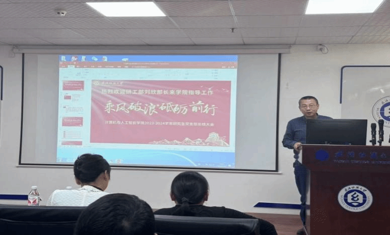 年度总结会议上,刘欣在听完深学领航党支部副书记闫嘉雯汇报后,充分肯定了学院的党建工作和学科发展,并对未来的工作提出了指导意见。刘部长强调计算机与人工智能学院在学科交叉和支撑其他学科发展中的重要作用。随后,刘部长鼓励党支部开展更多有意义的活动,以提升党支部的组织力和凝聚力。晏伟指出,刘部长的到来不仅是对我院研究生发展工作的关心和支持,更是对我院未来发展的期待和重视,研究生支部要进一步发挥党支部的战斗堡垒作用,带领广大研究生同学们奋发图强,创造更多好成绩。