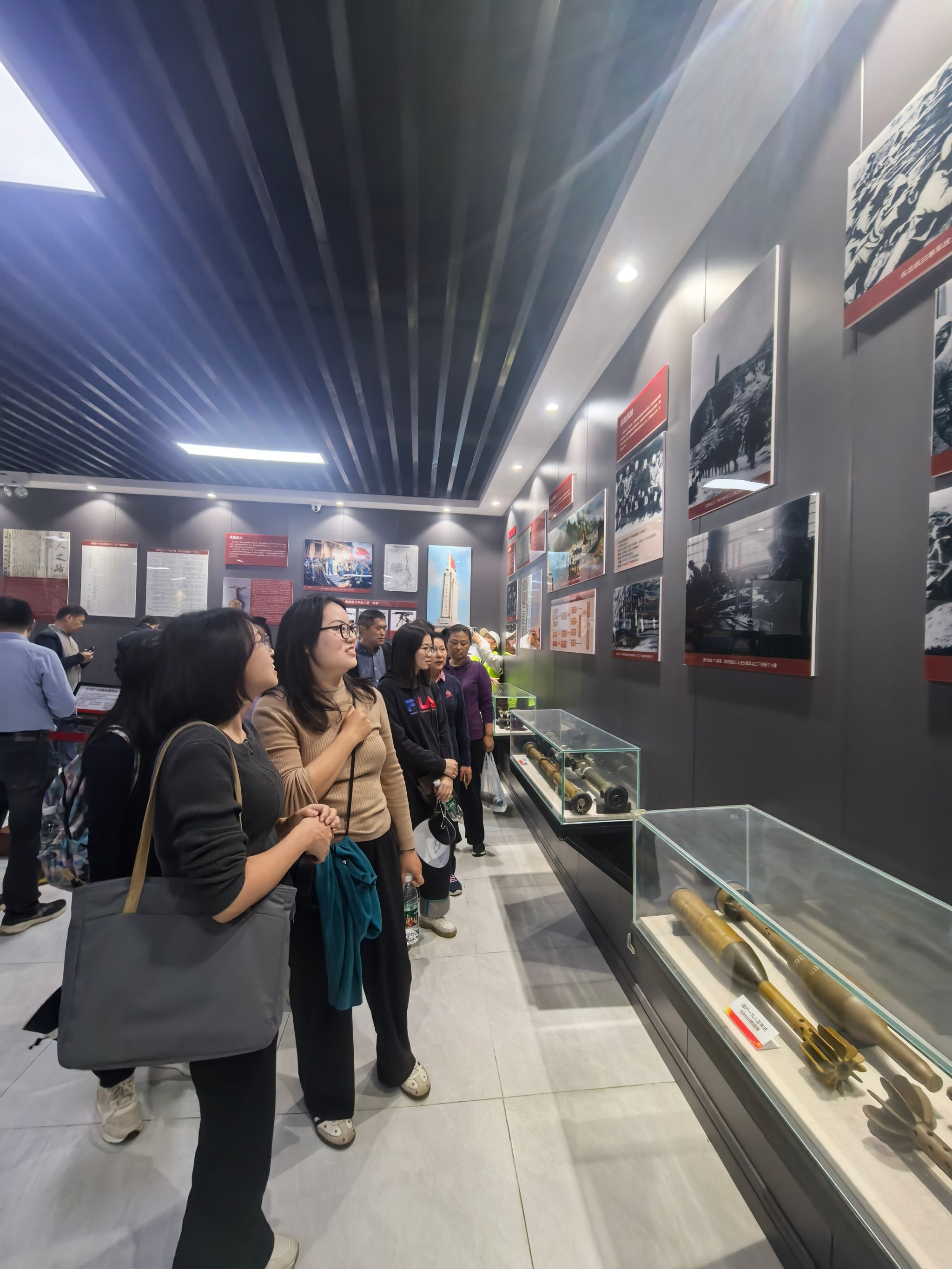 3303兵工厂前身是清末湖广总督张之洞于1890年创办的汉阳兵工厂,著名的“中华第一枪”汉阳造的诞生地。现在,3303兵工厂是中央在汉大型国有军队企业,是陆军装备部直属装备保障骨干企业。在国防陈列馆里,师生们共同参观了兵工厂的发展历史,从大量史料和陈列展品,深刻体会了中国军工事业从无到有、从弱到强的发展历程,增强民族自信心的同时,强化了为中国式现代化努力奋斗的决心。