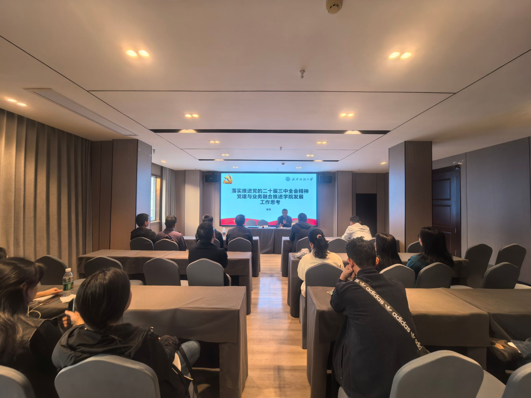 参观结束后,学院党委书记晏伟以《落实推进党的二十届三中全会精神——党建与业务融合推进学院发展工作思考》为题,与全体党员共同探讨如何发扬党员先锋模范带头作用促进学院发展。他结合党的二十届三中全会精神,就四个层面的思考,向大家指出了学校、学院、系部、个人等改革和发展的方向,要求和号召全体党员以实际行动加入到“发展共同体”,推进学院事业发展。