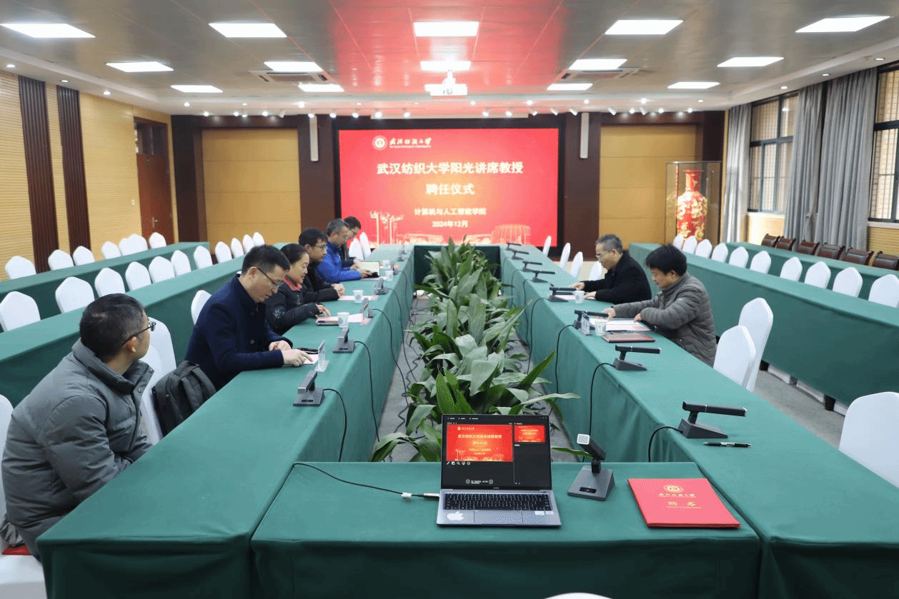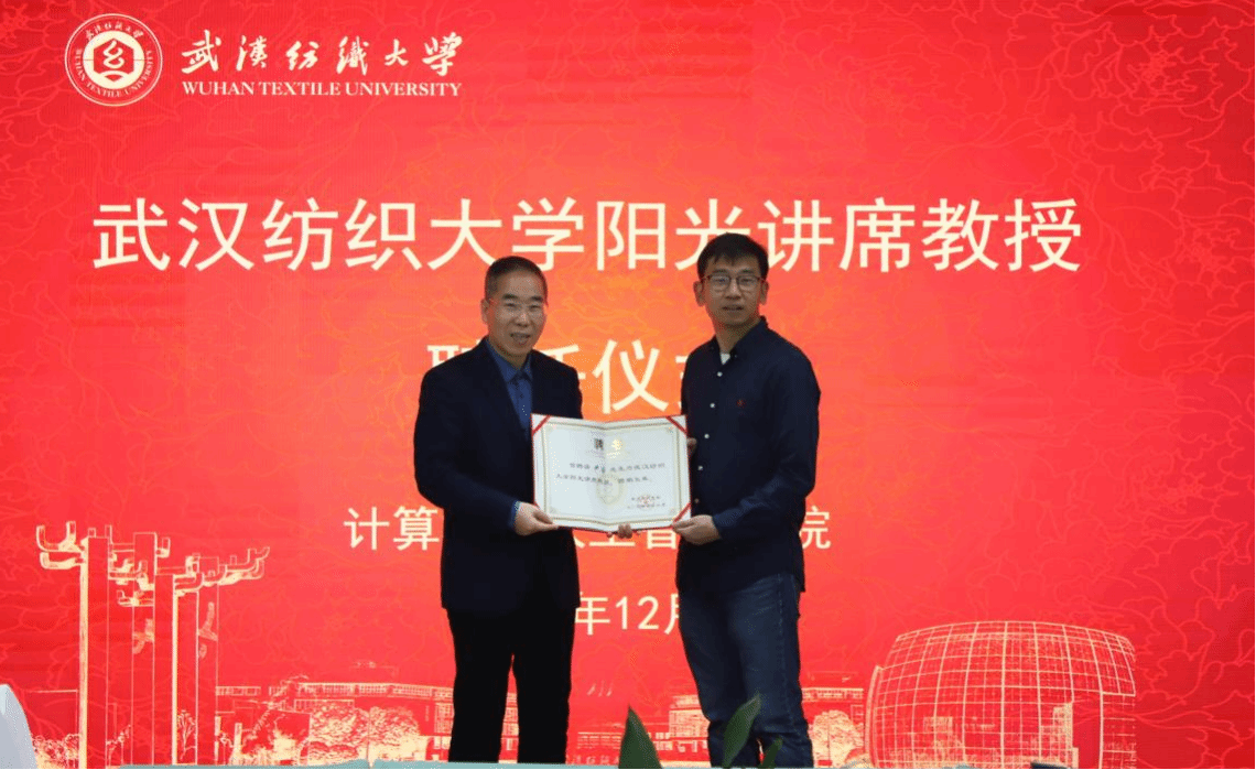 12月13日上午,武汉纺织大学阳光讲席教授聘任仪式在行政楼115会议室举行。中国人民大学严睿受聘为我校阳光讲席教授,中国工程院院士、校长徐卫林出席聘任仪式并为严睿颁发聘书,人事处负责人、计算机与人工智能学院班子成员和骨干教师等参加,会议由计算机与人工智能学院院长胡新荣主持。