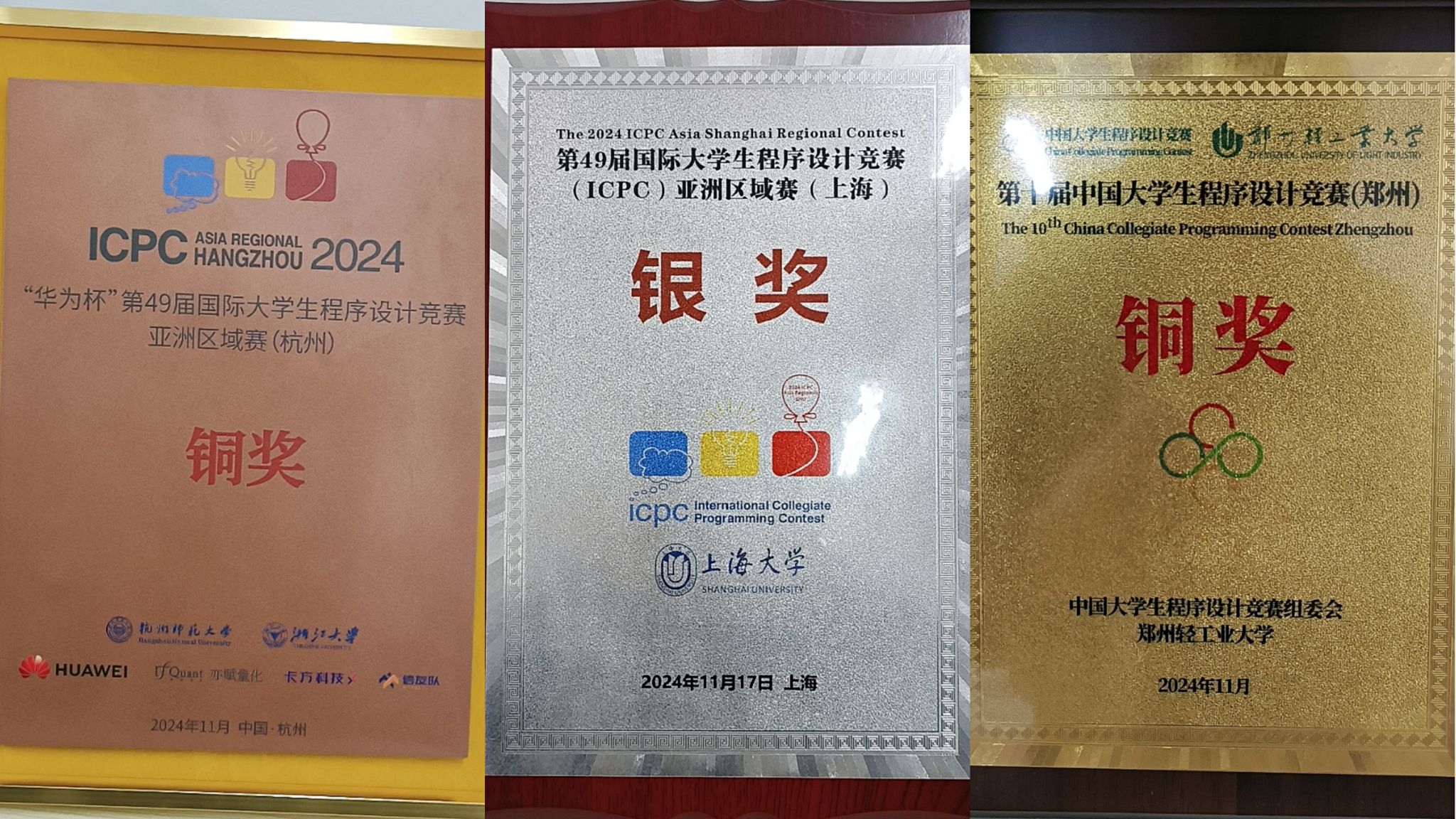 在杭州师范大学圆满落幕的ICPC国际大学生程序设计竞赛亚洲区域赛(杭州站)中,来自全国各大知名高校的389支队伍齐聚一堂,展开了一场激烈的脑力较量。经过5小时3分钟的紧张角逐,我校由计算机与人工智能学院张自力老师和胡新荣老师指导的“别质疑我们了好吗?好的,乖,摸摸头”脱颖而出,荣获铜牌!该队由人工智能专业2023级孔浩杰、2021级谢飞,以及计算机与科学技术专业2023级林舒乐三位同学组成。他们凭借扎实的专业知识、默契的团队配合和冷静的临场发挥,取得了优异成绩。回顾比赛过程,队员们感慨万千。由于初期低估了签到题的难度,导致第一道签到题错误提交了3次才得以解决,一度陷入困境。然而,凭借过硬的心理素质和丰富的比赛经验,他们迅速调整状态,集中攻坚,最终以低罚时且相对较快的速度完成了4道题目,排名攀升至150名左右,最终荣获铜牌,为学校争得了荣誉!