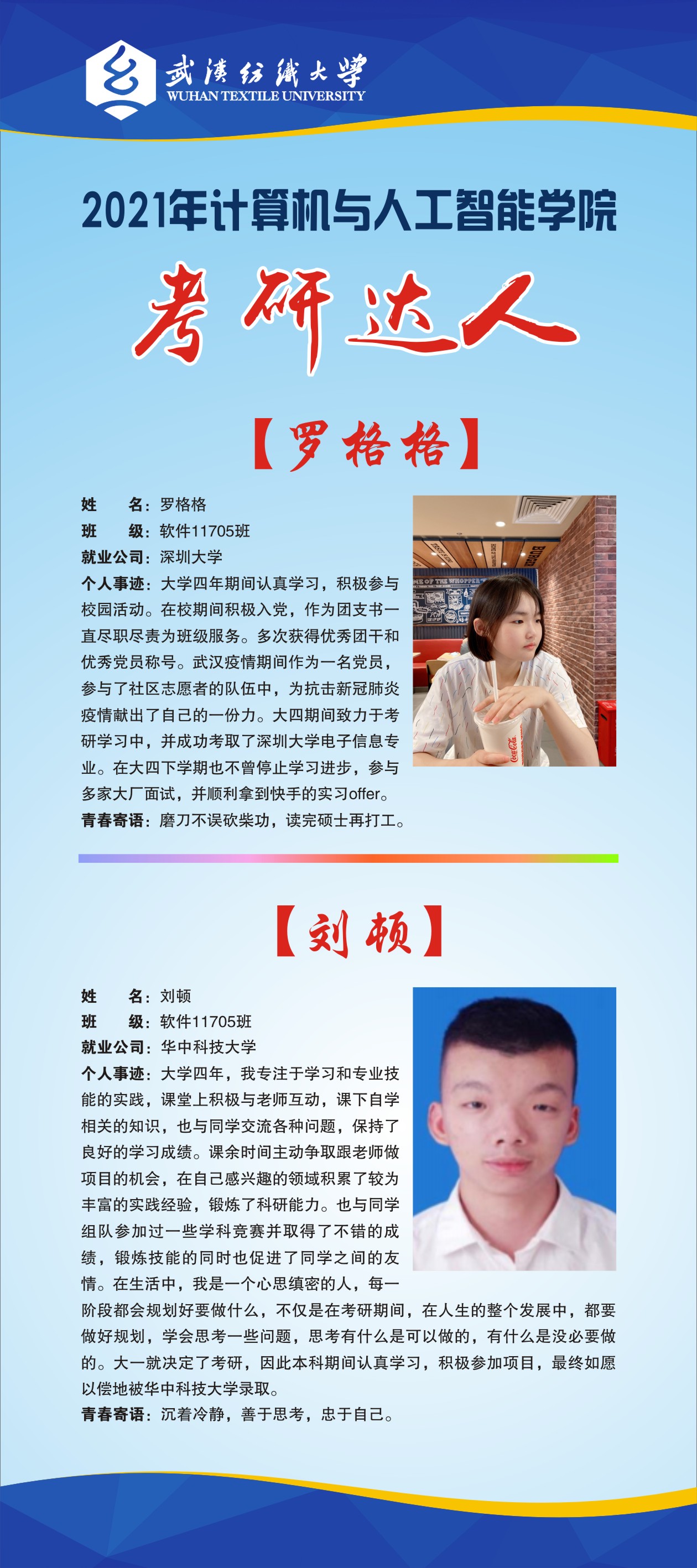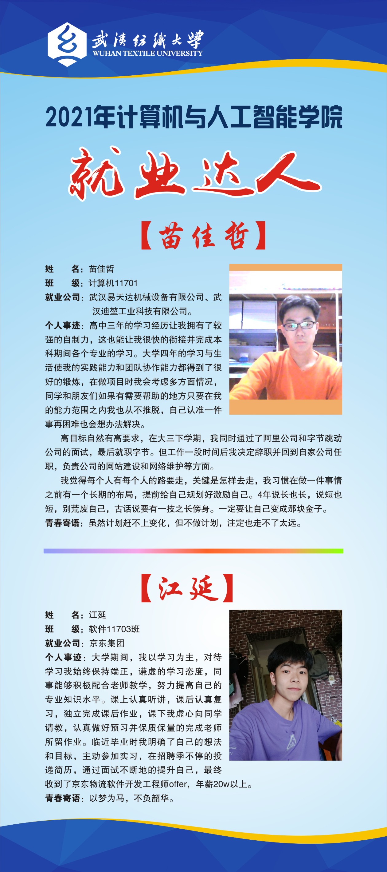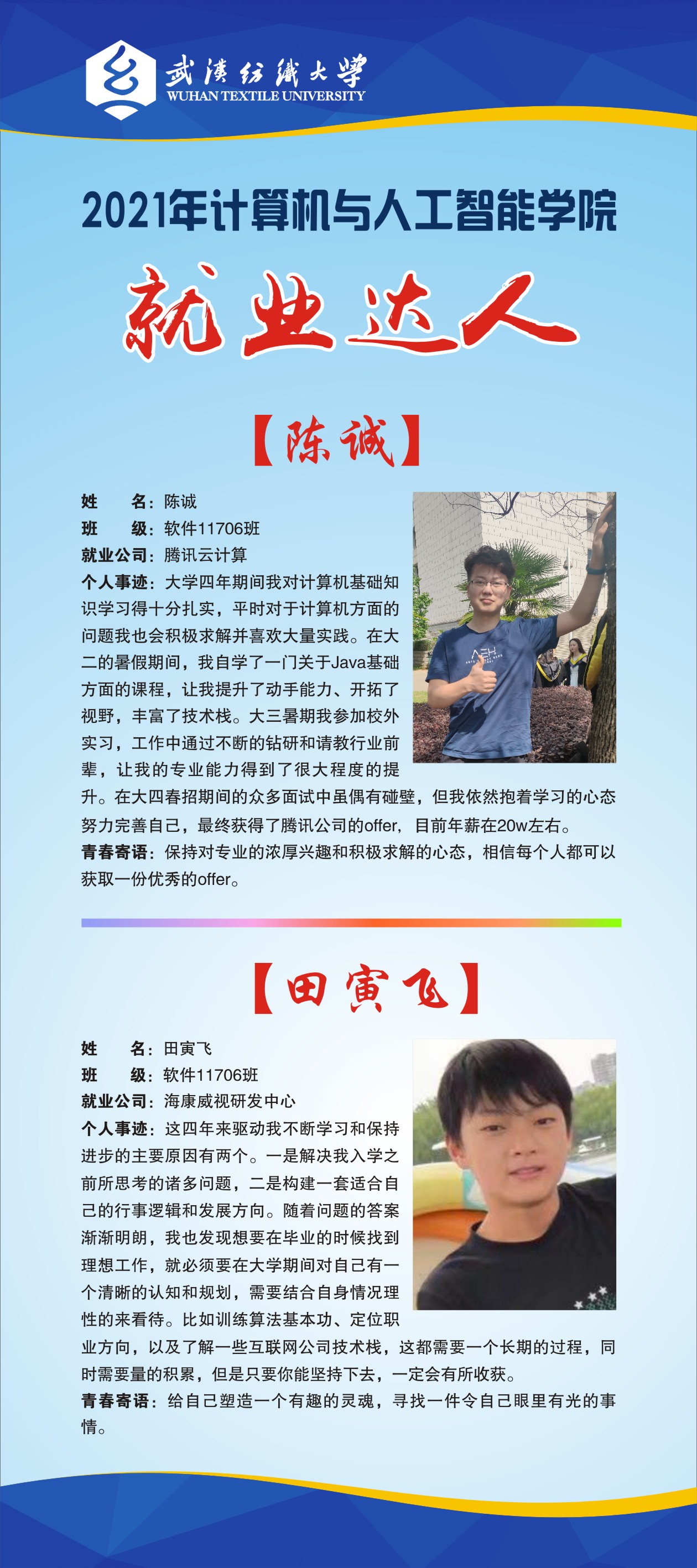 专业介绍:本专业顺应国家对人工智能人才的需求,面向人工智能领域的应用开发,算法设计等人才紧缺领域,培养掌握人工智能领域的理论知识和工程技术,富有家国情怀和奋斗精神,具有较强的创新和实践能力,能解决人工智能及相关领域复杂工程问题能力的高素质复合型创新人才。目前数据科学与大数据技术与人工智能这两个专业都隶属于计人工智能系。人工智能系共有专业教师8名,其中教授1名,副教授3人,具有博士学位7人,“阳光拔尖人才”1名,近年来,本专业教师获湖北省科技进步三等奖1项、多名教师获学校教学质量优秀奖、学校“科研标兵”、武汉纺织大学科技进步二等奖等荣誉称号。近年来,本专业教师承担了国家自然科学基金项目、国家档案局科技项目、湖北省自然科学基金项目、湖北省教育厅重点项目和中青年人才项目,以及湖北省统计局项目等15项,出版教材2部,发表A类以上高水平论文10余篇,申请国家专利5项。主持横向项目十余项,项目经费进账600余万。拥有大数据服务中心、人工智能创新实验室、人形机器人实验室、工业机器人实验室、计算机机房、机器视觉实验室、嵌入式系统创新实验室等。同时,在人工智能等专业实践与应用场景方面,在服装产业数字化、智能化领域积极布局,拥有湖北省服装信息化工程技术研究中心、云计算研究所、机器学习研究所及大数据工程中心,还与科大讯飞、万方数据、奥浦信息等企业联合共建了人工智能实验室、纺织大数据研发中心、信息安全实验室等研发基地。、主要开设课程:计算机相关课程(程序设计语言,数据结构,数字逻辑,编译原理,操作系统,计算机网络原理,计算机组成原理);人工智能相关课程(算法分析与设计,数字图像处理,最优化方法,控制理论与方法,神经网络,机器学习,深度学习与应用,自然语言处理)。