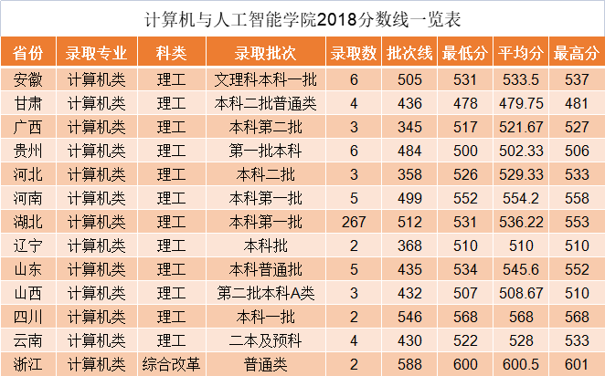 三、计算机与人工智能学院2018分数线