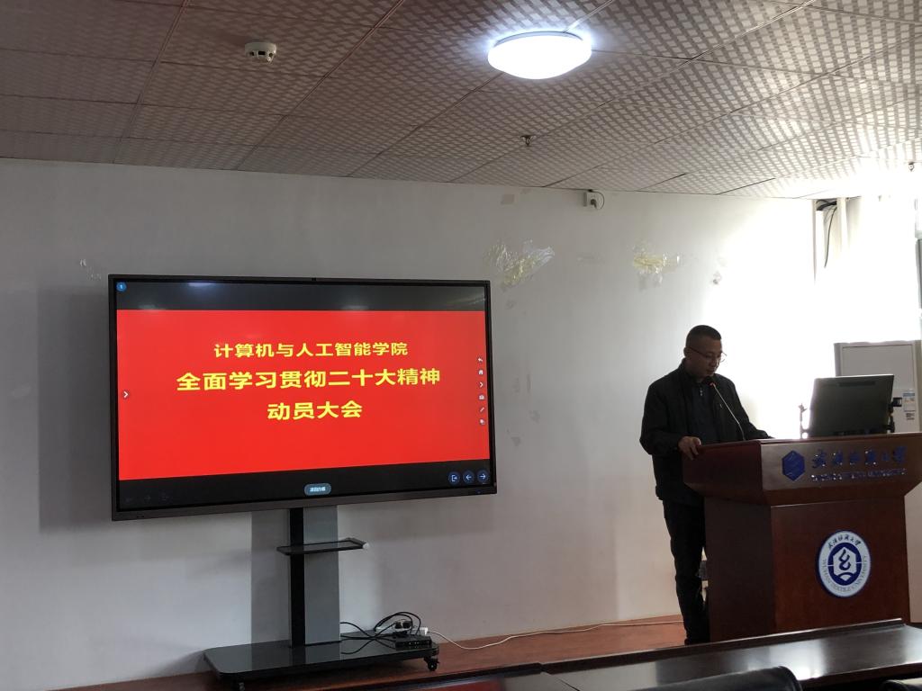 为深入学习贯彻党的二十大精神,11月17日下午,计算机与人工智能学院在崇真楼南楼A4030召开学习贯彻党的二十大精神动员大会。学院党委书记晏伟主持会议并讲话,全院教职工参加了会议。