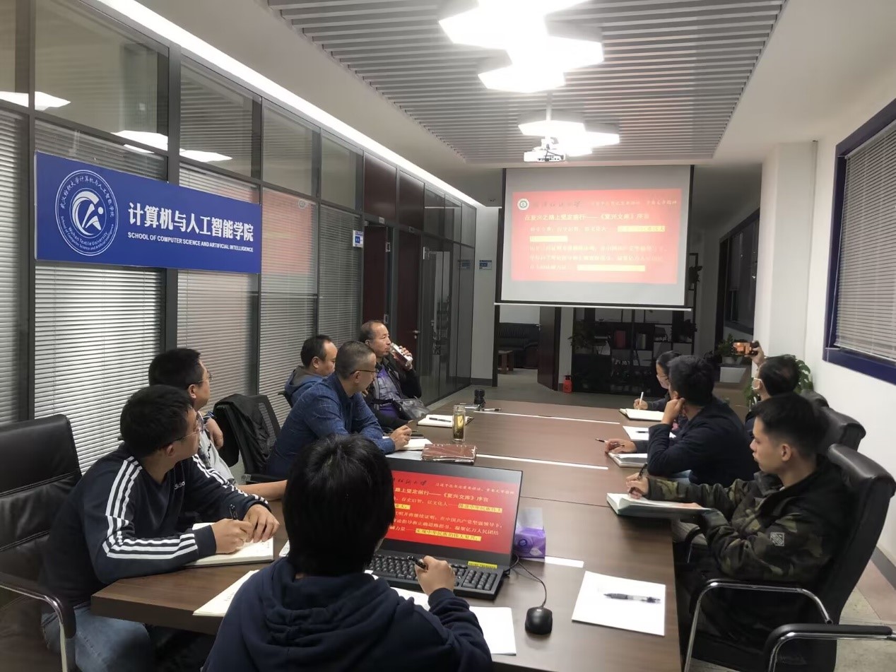 10月13日,计算机与人工智能学院在崇真楼南楼A4008举办“专题读书班”第二讲。学院党委书记晏伟主持并以《复兴文库》序言——《在复兴之路上坚定前行》为主题领学。学院班子成员、行政办公室,辅导员、支部书记等相关人员参加学习。