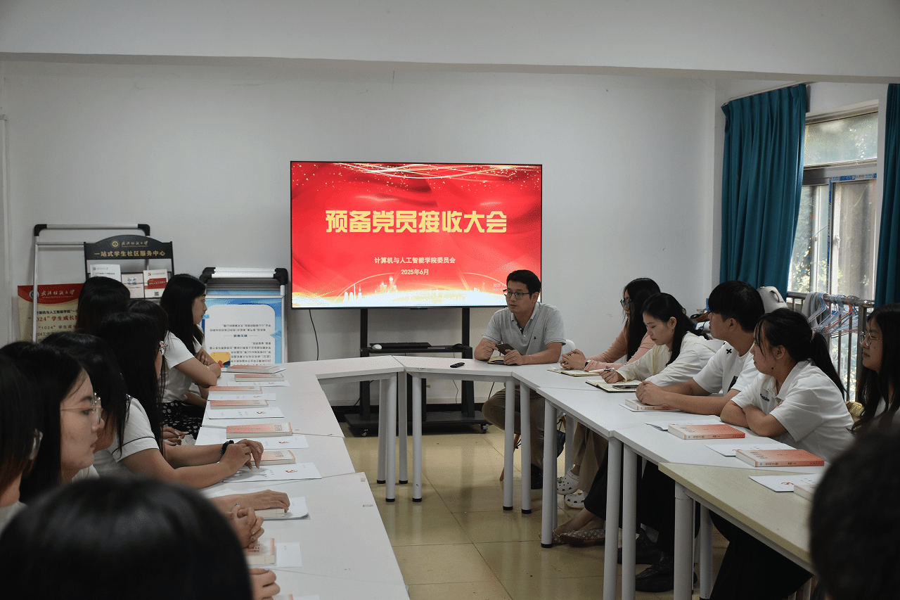 6月27日,计算机与人工智能学院本科生党支部召开支部党员大会,讨论接收2025年上半年预备党员,院党委副书记向涛、各学生党支部书记、全体新发展的党员参会。会议由本科生第一党支部书记张栋主持。