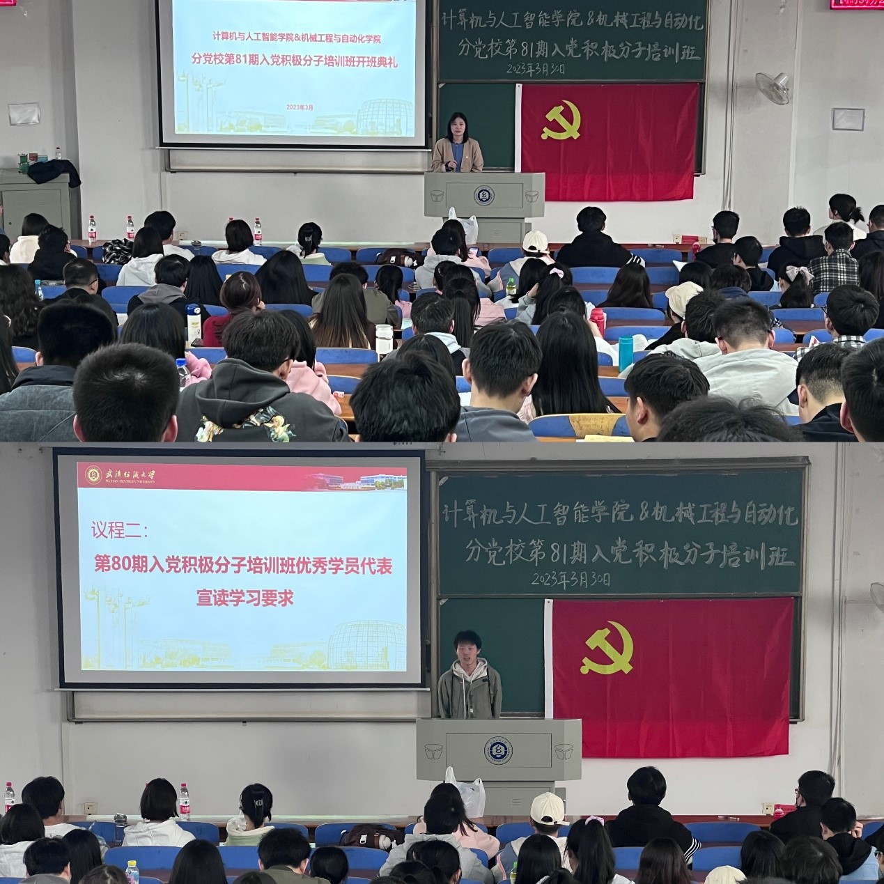 为深入学习贯彻党的二十大精神,引导入党积极分子进一步端正入党动机,明确党员权利义务,提高党性修养和理论素养。3月30日,计算机与人工智能学院分党校第81期入党积极分子培训班开班典礼在崇志楼T202举行。计算机与人工智能学院党委书记晏伟出席开班仪式并作动员讲话。入党积极分子培训班全体成员参加开班典礼,开班典礼由学生支部书记喻仪主持。