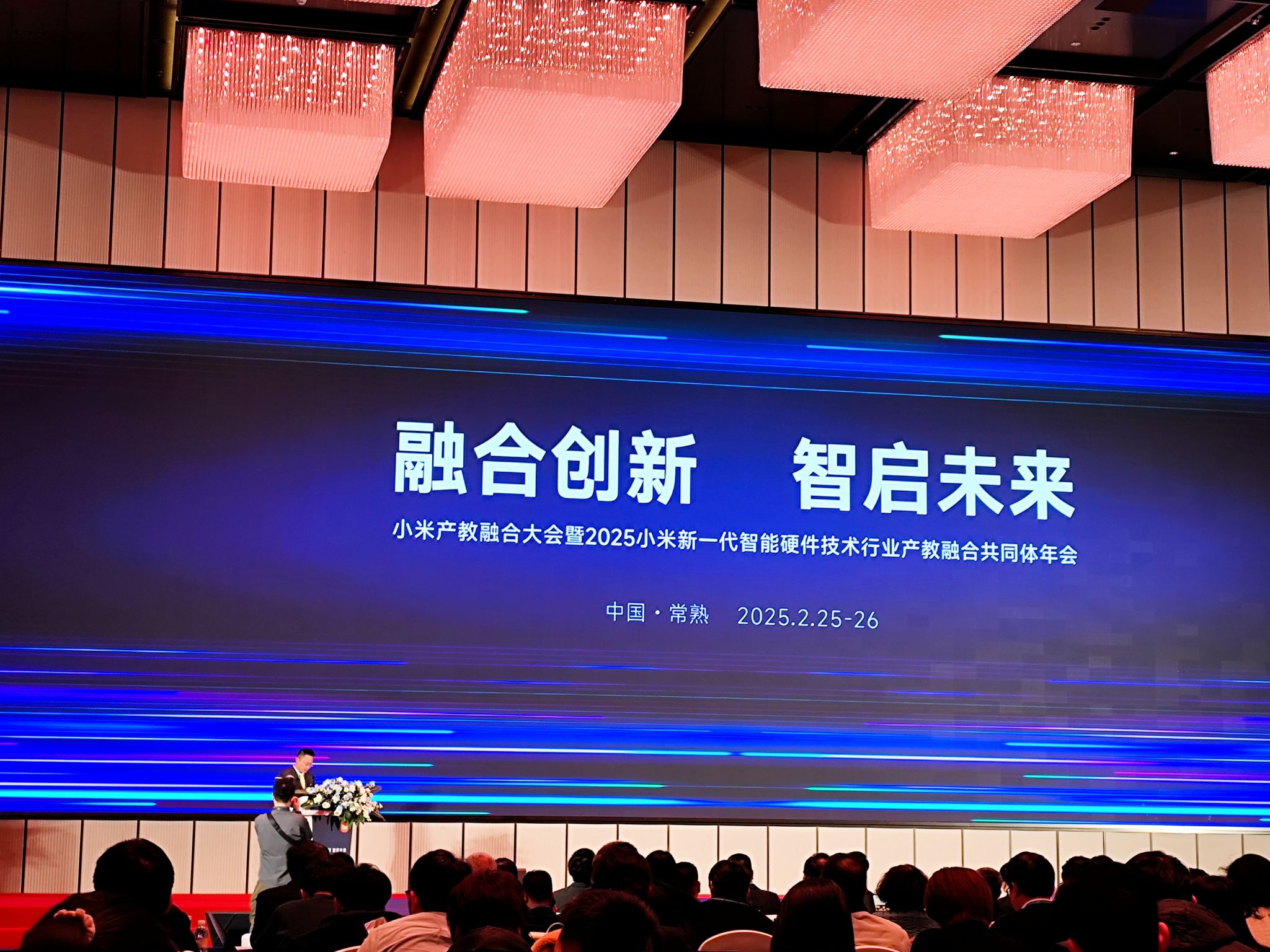 2025年2月24日至26日,备受瞩目的“融合创新,智启未来:2025小米新一代智能硬件技术行业产教融合共同体年会”在江苏常熟市隆重举行。我校计算机与人工智能学院院长胡新荣、产学研合作办公室主任刘军平以及物联网教研室主任丁磊代表学校受邀参加了此次盛会。本次年会汇聚了来自政府、企业、高校和科研机构等众多单位的代表,共同探讨新一代智能硬件技术行业产教融合的发展方向与合作机遇。会议期间,各位领导和专家发表了精彩的致辞和主题演讲,为产教融合的深入推进提供了宝贵的思想和经验。