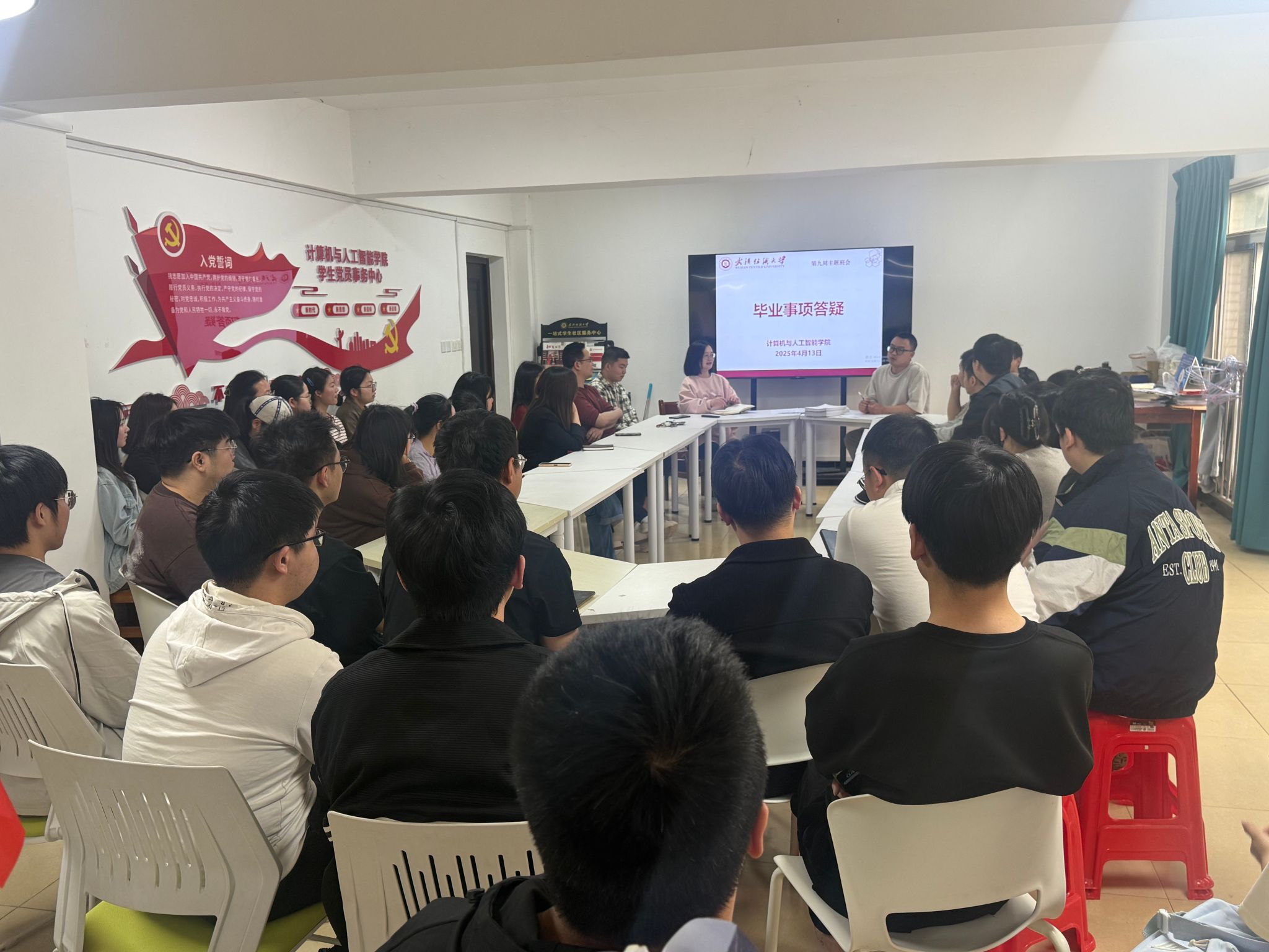 为进一步推进毕业班学生就业工作,帮助学生明确就业方向、把握就业机会,落实就业去向,4月16日,计算机与人工智能学院在5栋学生宿舍一站式二楼召开了2025届大数据专业毕业生就业座谈会。学院党委副书记向涛、大数据专业负责人李丽主任、班主任黄晋、阮晓莉、辅导员谢瑞清、张栋以及全体在校的大数据专业学生参加了此次会议。