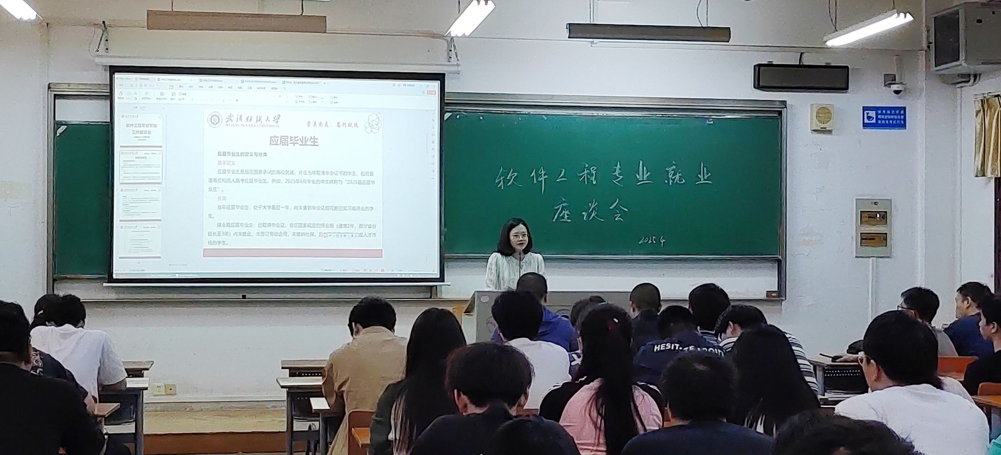 4月18日,计算机与人工智能学院软件工程系于03-201教室成功举办了一场就业座谈会。此次座谈会聚焦毕业生就业相关事宜,为学生们答疑解惑,助力他们顺利迈向人生新征程。软件工程系主任叶鹏、班主任王帮超、胡兵、李帆以及辅导员汤若釴、谢瑞清出席,座谈会由谢瑞清主持。