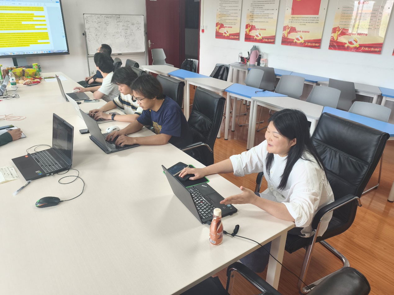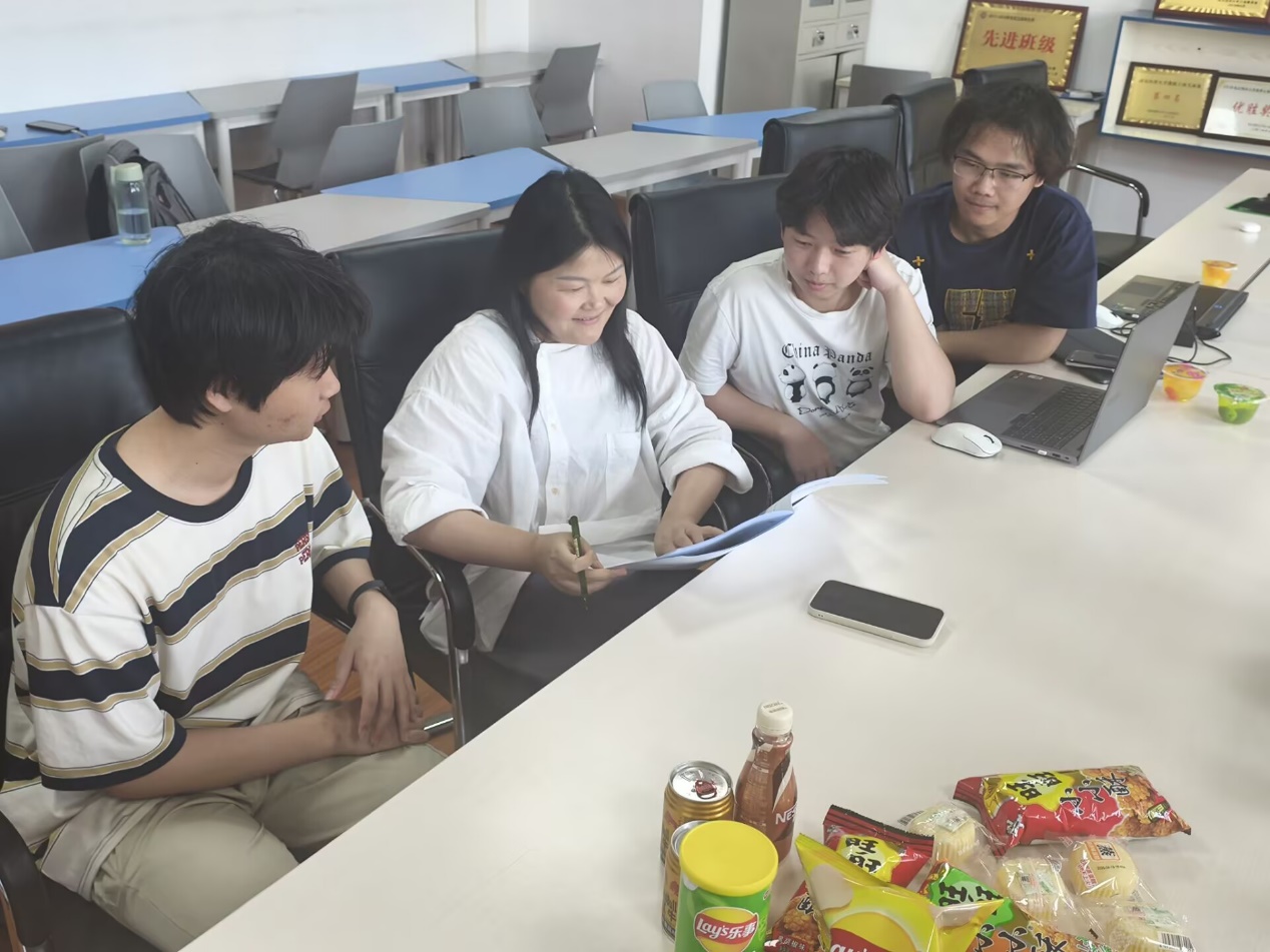 图3 万红艳老师与学生团队讨论申报书修改方案