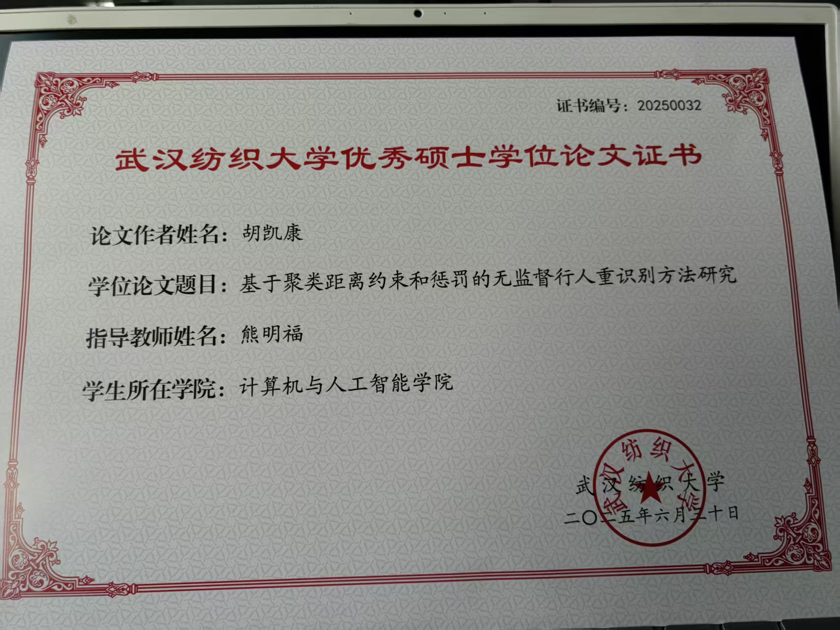 教学团队的熊明福博士不仅学术影响力与科研转化能力突出,更始终潜心育才。2025 年,他指导的研究生胡凯康的学位论文《基于聚类距离约束和惩罚的无监督行人重识别方法研究》,获评武汉纺织大学优秀硕士论文;同时,他悉心指导的 2023 级研究生葛龙龙,凭借扎实的科研素养与优异的综合表现,成功斩获国家奖学金,充分彰显了其高质量的育人成效。